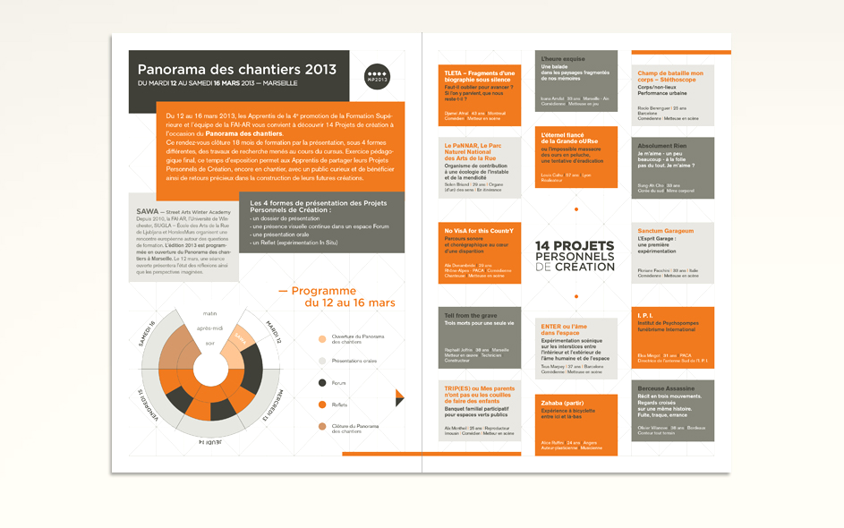 Les étudiants de la FAI-AR sont nommés apprentis en référence à l’école allemande du Bauhaus. Cette dénomination traduit le projet pédagogique de la FAI-AR qui associe apports théoriques, pratiques et expérimentations auprès de professionnels en activité. Le cursus de 18 mois est construit en itinérance entre Marseille et de nombreux points d’appui en France et à l’international. C’est dans ce même axe, ouvert sur plusieurs plans, que se déploie l’évolution de l’identité visuelle que nous avons élaborée ensemble.