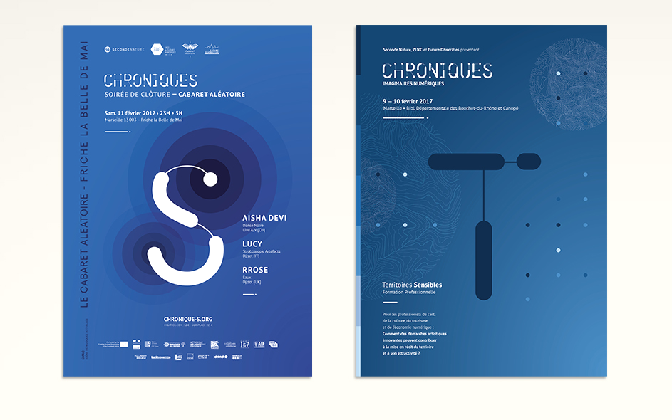 Chroniques, Imaginaires numériques, est une invitation à découvrir la diversité des esthétiques contemporaines et la vitalité du territoire. Pendant deux semaines Seconde Nature et ZINC, avec les acteurs des arts et cultures numériques investissent le centre ville de Marseille. Le parcours Révélations vous invite à re-découvrir le patrimoine en plein cœur historique de la ville. Les artistes investissent musées, églises, rues, immeubles, commerces, donnent la parole aux habitants et visiteurs pour dresser un portrait de Marseille. Ce rendez-vous a été pensé et construit avec près d’une centaine de professionnels ; des associations culturelles, des bibliothécaires, des médiateurs, des étudiants, des commerçants et, bien entendu, des artistes. Au fil des Chroniques, nous avons travaillé sur plusieurs marqueurs avec comme dénominateur commun : la culture, l’art et la technologie au centre des questions et des enjeux des territoires.