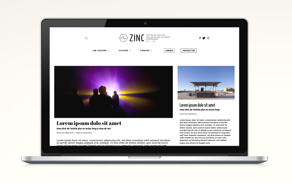 Avec Marylou Bonnaire et l’équipe de Zinc nous avons commencé à travailler sur une Revue. Les buts poursuivis étaient multiples. Unifier la communication de Zinc, mettre en musique toute son action, toute sa contribution à la marche du monde ;-) et retrouver en un seul objet central l’ensemble des activités, des actualités et la force créatrice de l’association. Cette revue devait permettre de prolonger les idées développée sur le terrain par les équipes de Zinc, les artistes et les chercheurs. Cette idée de Revue, de brand content devait se retrouver dans le nouvel outil web que vous retouverez aussi en fin de présentation. Projets non aboutis mais que je tenais à vous présenter.